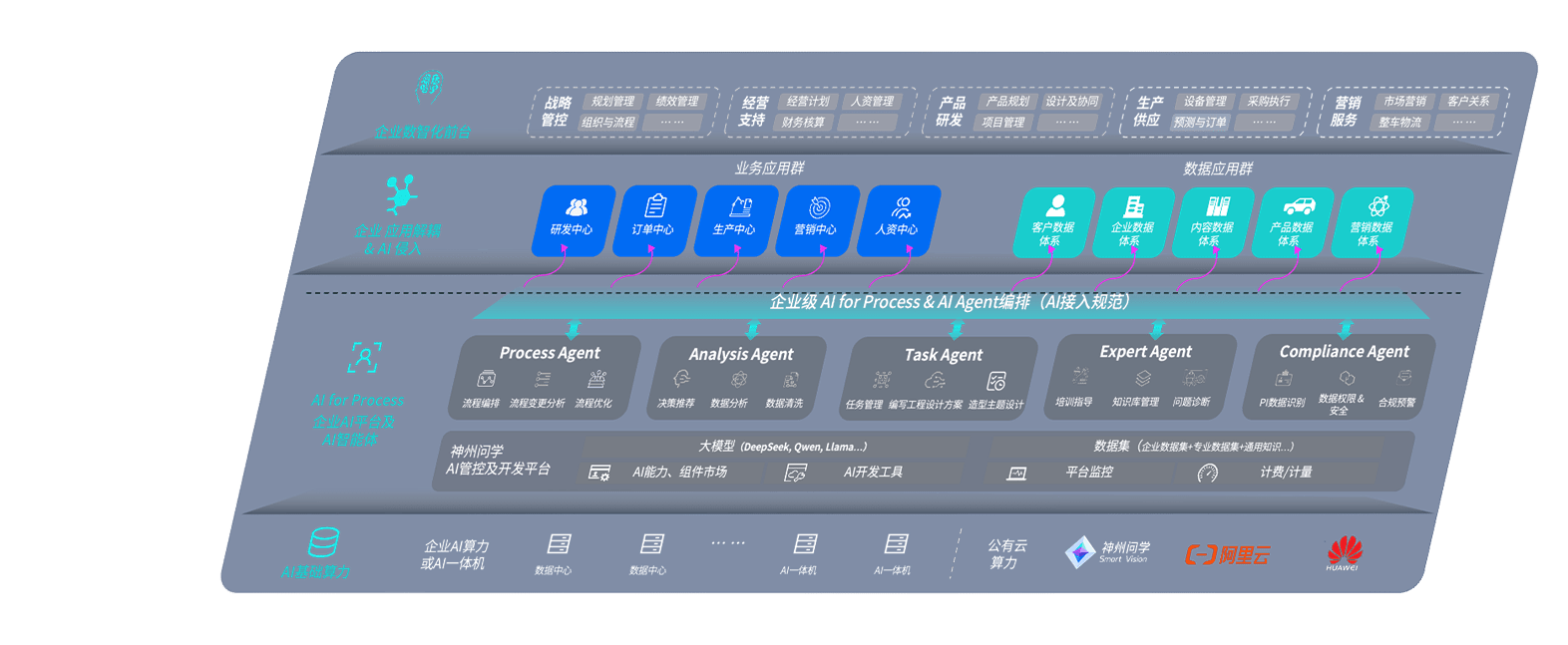 端到端的一站式AI工作空间深度融合了从企业战略规划到日常经营的全流程业务板块,,,定向解决车企内部领域多、、部门多、、链条长、、、、场景碎片化等难题,,,,支持车企快速构建以AI为核心的生产力写作体系,,实现任务执行与AI能力的无缝集成与交互